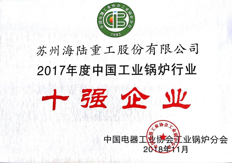 “2017年度中國(guó)工業(yè)鍋爐行業(yè)十強(qiáng)企業(yè)”