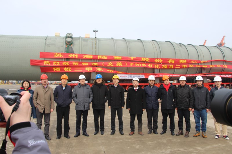 恒逸石化PMB石油化工項(xiàng)目最大單體設(shè)備抽余液塔,直徑10.7米,長(zhǎng)度81米,自重907噸,花落文萊達(dá)魯薩拉國(guó)PMB島!